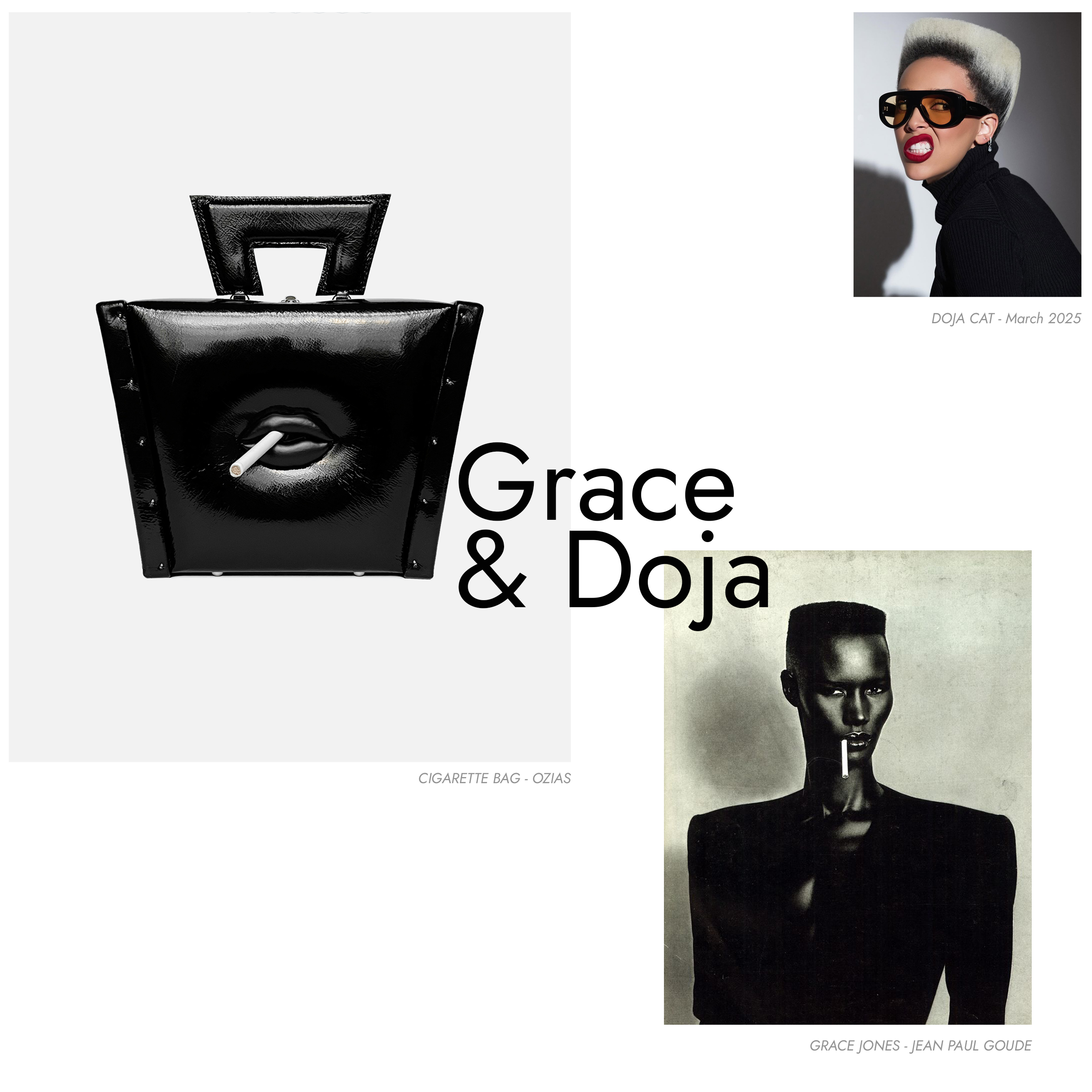 in April 2025, Ozias designed the cigarette bag for Doja Cat, inspired by the iconic photo of Grace Jones taken by Jean-Paul Goude. With this creation, the studio took its embossing technique further, incorporating embossed lips and a leather cigarette emerging from the mouth, pushing the signature design to new heights.