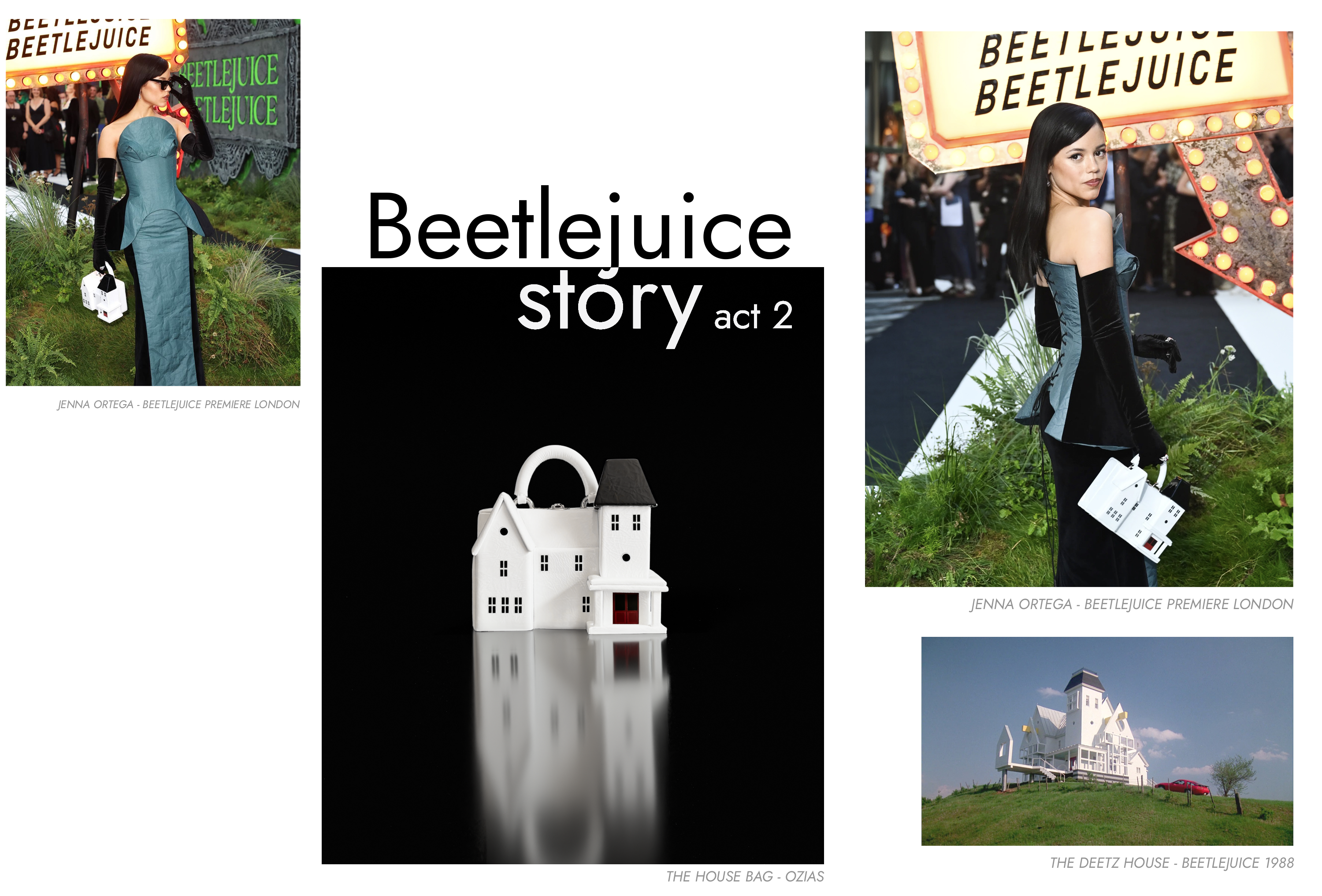 Ozias designed a technical masterpiece for the London premiere of Beetlejuice Beetlejuice. The Deetz house from the film was transformed into a handbag, with a unique opening at the roof. This creation made waves worldwide, forever changing Ozias. Jenna Ortega wore it on the night of the premiere, cementing its place in fashion history.